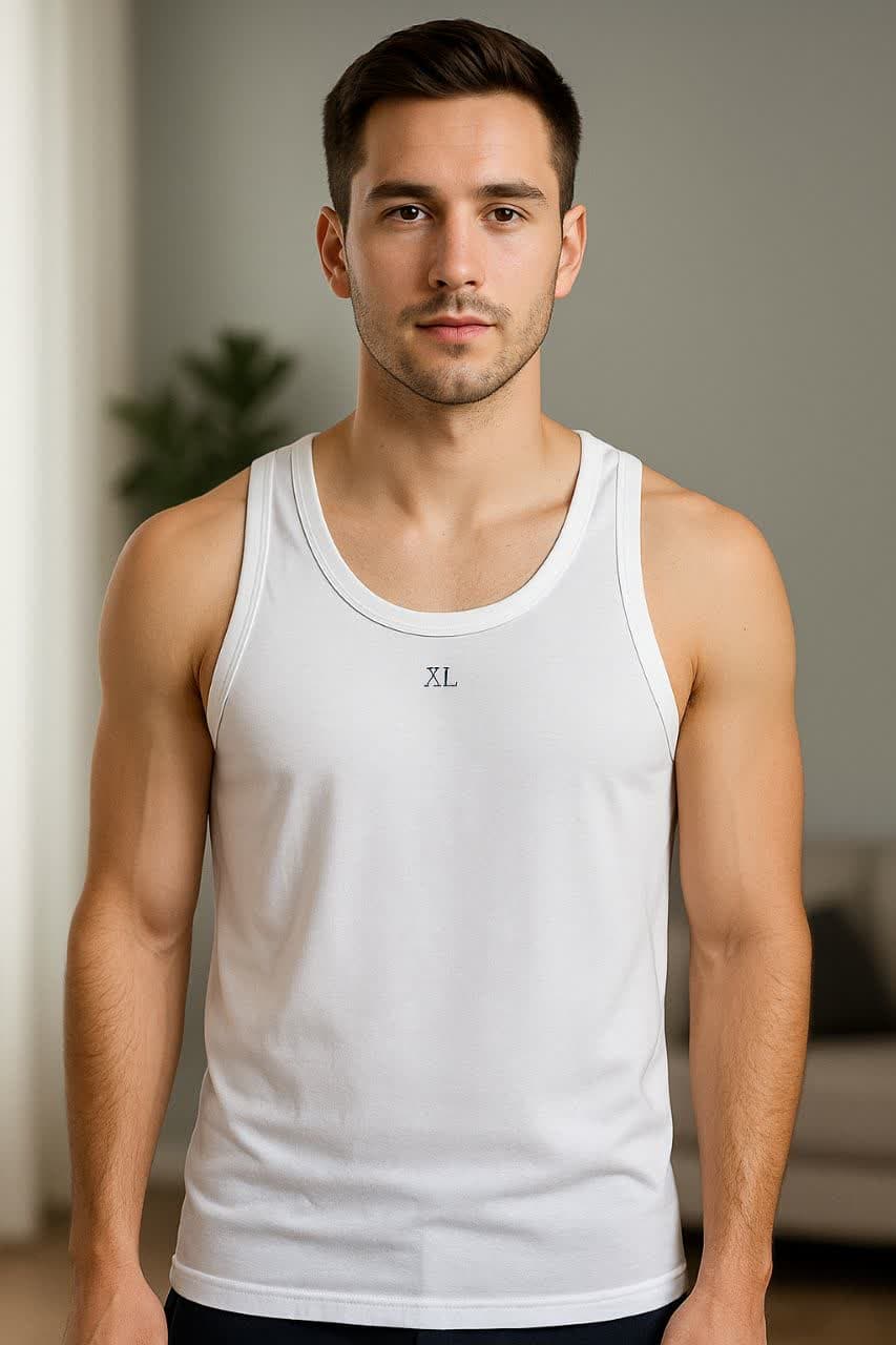 رکابی سفید سایز XL، ساده و کاربردی با دوخت تمیز، مناسب استفاده روزمره آقایان.